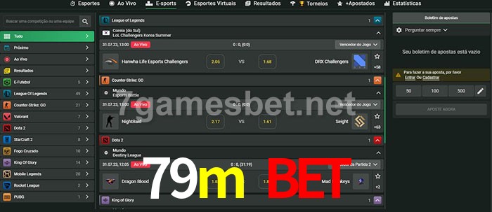 O 79m bet oferece uma grande seleção de opções de apostas em e-sports com probabilidades competitivas
